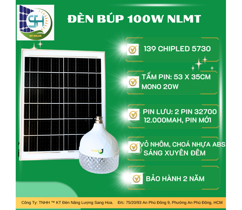 ĐẶC ĐIỂM NỔI BẬT ĐÈN BÚP 100W NĂNG LƯỢNG MẶT TRỜI SH SOLAR