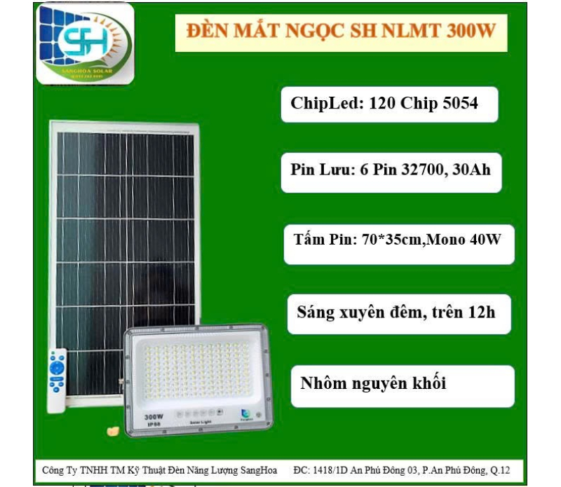 Mẫu đèn pha năng lượng mặt trời mắt ngọc 300W bọc cầu SH SOLAR là sản phẩm công nghệ tiên tiến, sử dụng nguồn năng lượng mặt trời tiềm năng tại SH SOLAR để cung cấp ánh sáng mạnh mẽ và bền vững cho các khu vực cần chiếu sáng. Với công suất l`ên đến 300W, đèn pha mắt ngọc 300W có khả năng chiếu sáng hiệu quả một diện tích lớn, là lựa chọn hoàn hảo cho các khu vực gia đình, công cộng, bãi đỗ xe, khu đô thị và các khu vực phục vụ công năng khác.