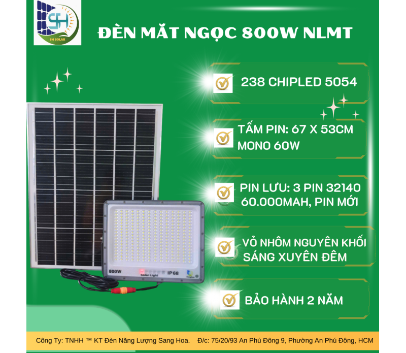 THÔNG SỐ KỸ THUẬT ĐÈN MẮT NGỌC SH 800W