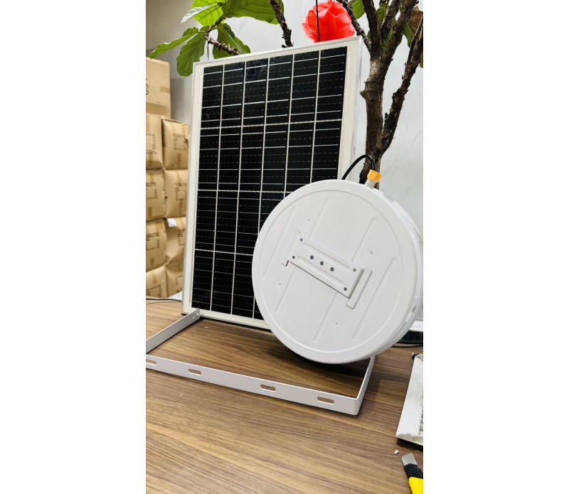 - Tấm pin năng lượng: kích thước 45*67cm, Mono sạc nhanh 50W, giúp hấp thụ năng lượng tối đa, cho đèn sạc nhanh đầy pin dù thời tiết không đủ nắng, Viền Nhôm, Kính Cường Lực.