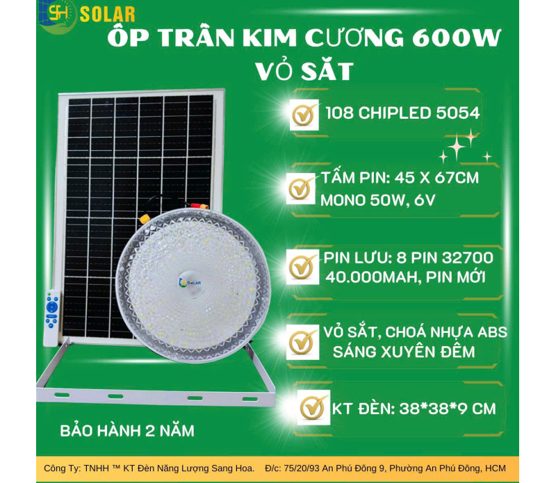 THÔNG SỐ CHI TIẾT MẪU ĐÈN ỐP TRẦN KIM CƯƠNG VỎ SẮT 600W NĂNG LƯỢNG MẶT TRỜI SH SOLAR: